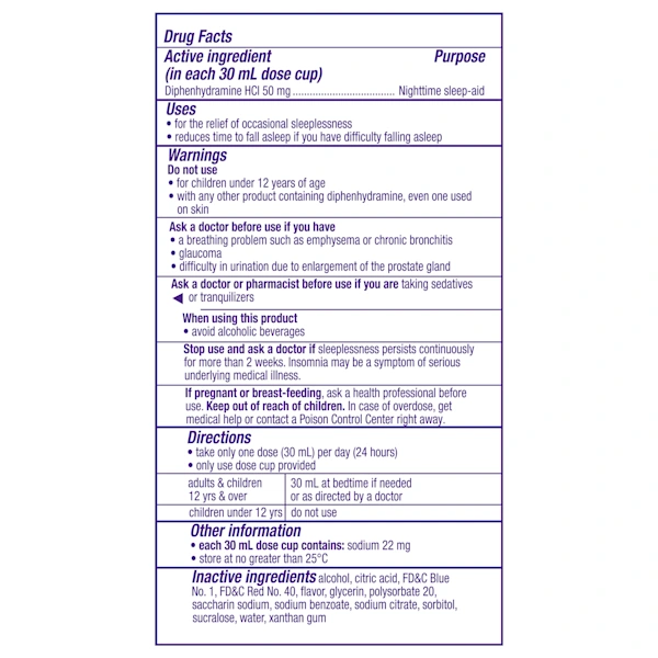 In each 30 mL dose cup: Diphenhydramine HCl 50 mg (Nighttime Sleep-Aid)