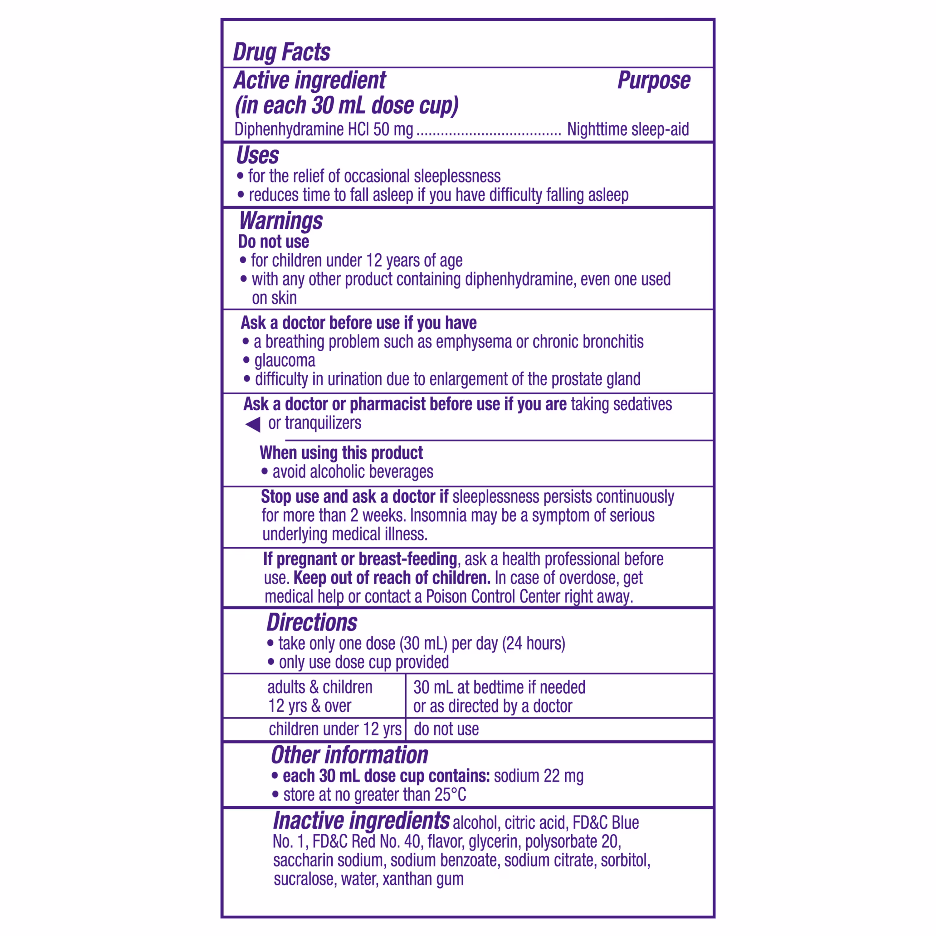 In each 30 mL dose cup: Diphenhydramine HCl 50 mg (Nighttime Sleep-Aid)