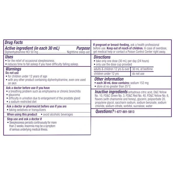In each 30 mL: Diphenhydramine HCl 50 mg