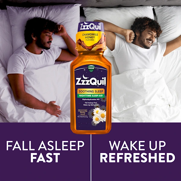 When you’re having trouble getting the sleep your body craves, add some Zzzs to your night with ZzzQuil Soothing Sleep Liquid! ZzzQuil is a non-habit-forming, nighttime liquid sleep aid that helps you falls asleep fast, in as little as 20 minutes. ZzzQuil Soothing Sleep is a soothing liquid that is Chamomile Honey Flavored – you’ll look forward to falling asleep!